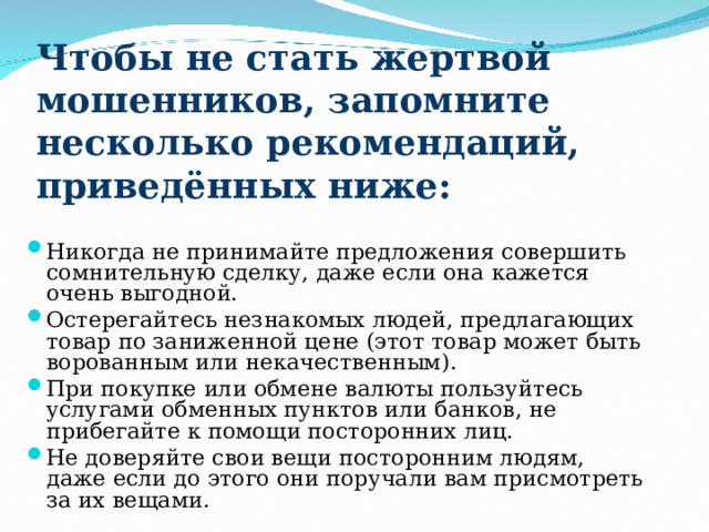Памятка об основных способах совершения сотовых мошенничеств с банковскими картами и мерах их предупреждения